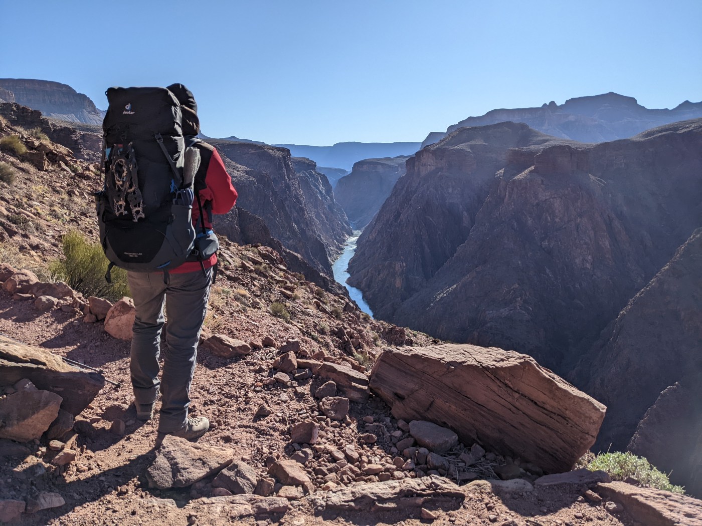 We wanted to spend 4 nights inside the canyon, so we started researching other trail options to take once we got down there. Alex found a good recommendation on AllTrails of the Clear Creak Trail. The Clear Creek Trail is an out and back trail that runs (roughly) east/west along the Colorado River from Bright Angel Campground to Clear Creek. At this discovery, we solidified our itinerary!