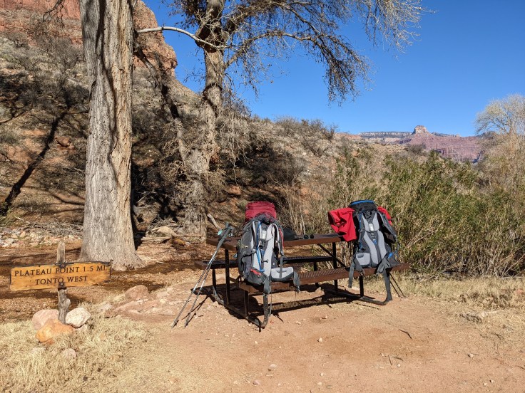 What we learned right away is that the North Rim, arguably the most popular side of the canyon, is closed in the winter due to dangerous road conditions. This left the South Rim option open to us which has two trails going down to the bottom of the canyon, the South Kaibab Trail and the Bright Angel Trail. Both end at Bright Angel Campground – the most well-known and traveled campground in the canyon.