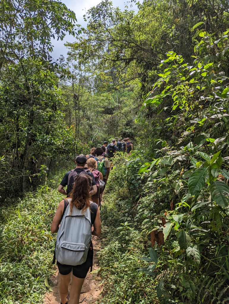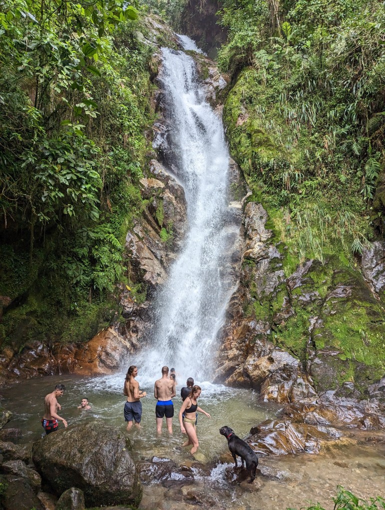 Blink (the school we are attending) often coordinates group activities for students. On Sunday, I joined in on a hike led by one of my professors while Alex stayed back to recuperate. As Medellin is nestled into a valley, there are several beautiful areas to hike just outside of the city. A group of about 20 of us went to an area with hiking trails just south of the city center called Arenales – a surprisingly rigorous hike that ended at a waterfall. It took about an hour to get there by public transportation (first train, then bus) and the entire round trip only cost about $2 usd. I still can’t believe how cheap everything is here!