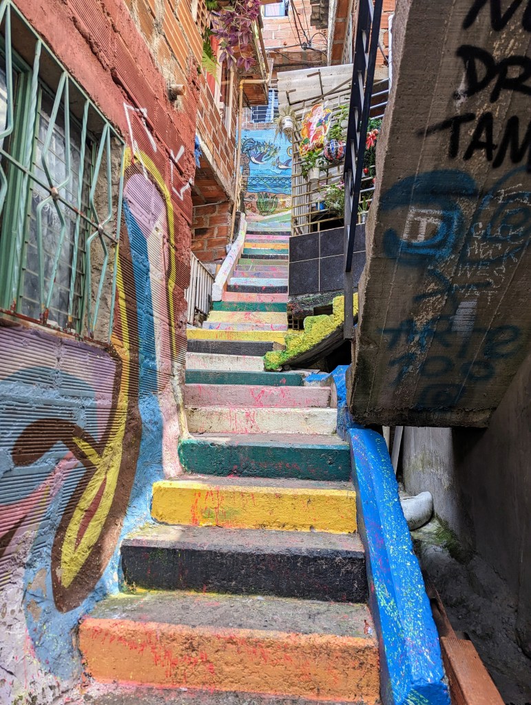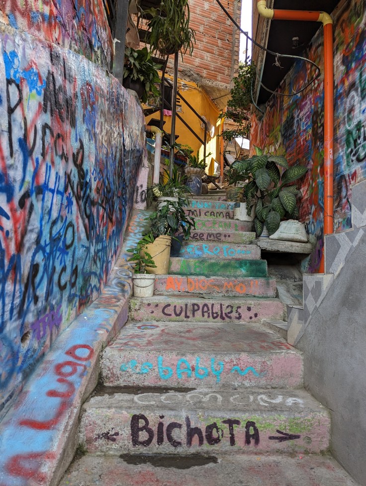 After so many years of violence and neglect, in 2006 the elected mayor decided to invest in the neighborhood. A new cable car line was built, connecting the neighborhood to the rest of the city, and electric outdoor elevators were installed allowing residents and visitors to avoid several hundred steps in the steeply sloped neighborhood. These efforts, along with the beautiful street art that became prolific, made Comuna 13 a symbol of transformation in Medellin. Today it is safe and a popular tourist destination… during the day, at least 🙂