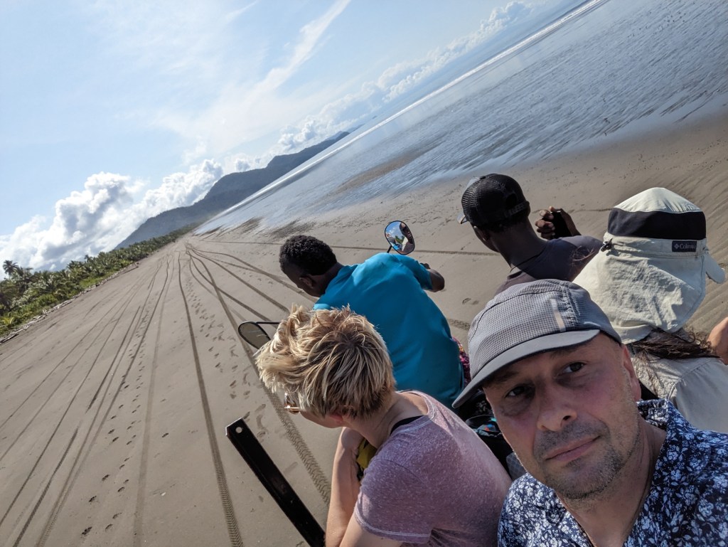 We happened upon some luck on our long walk along the beach and hitched a ride about halfway through on a motorcycle with a flatbed!