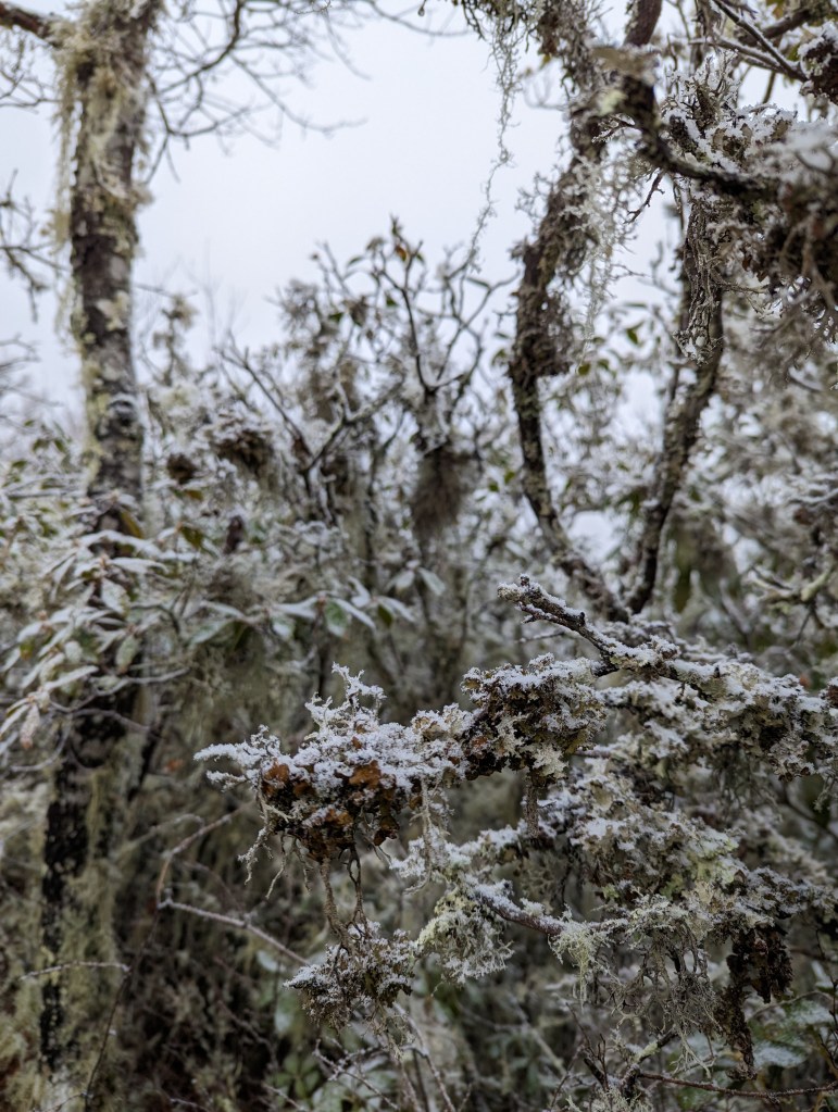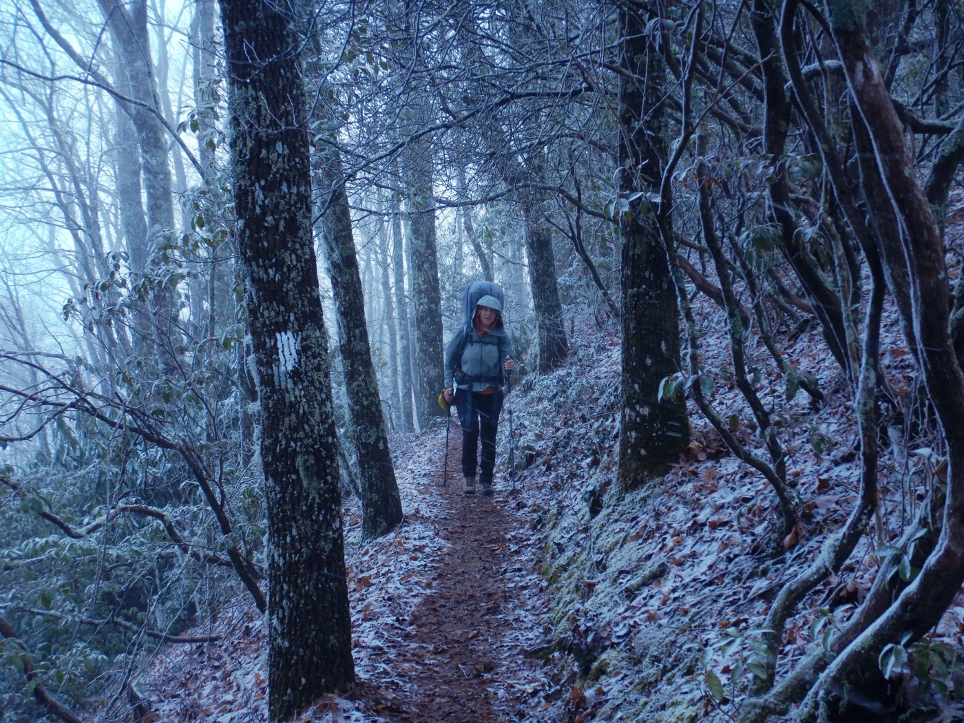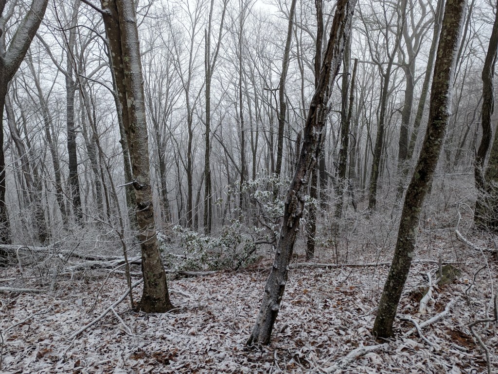 We knew we were lucky with the warm weather when we started our hike. Even in Georgia, 70s in February was very unusual. And now the cold has finally struck! The nights have been getting progressively colder for the last week, getting down below freezing a couple of nights. We have found that as long as we are dry, we stay cozy enough in the tent when the temps are at or above freezing. But anything much lower than that and our gear just cannot handle it! We got our first taste of snow the other day when we hiked into Fontana Dam, North Carolina. We tend to check the weather obsessively and it has been reliable for the most part, but that day it completely steered us wrong. Weather reports called for sunny skies and we walked through clouds and blizzardy conditions the whole day! It was a tough 15 miles.