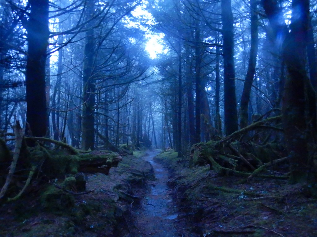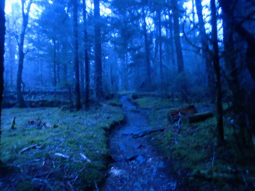 As our alarms went off at 5am, the wind was as harsh as ever and the rain had already begun. Packing up in the wind sucks. Packing up in the rain sucks. Packing up in the dark sucks! Packing up in windy rain when it’s dark? You get it. So we donned our headlamps, strategized how to get everything packed up as quickly and dryly as possible, and executed that plan about as flawlessly as I could have hoped. We were on the trail by 6am! The sun didn’t rise until 7:30ish, so the first part of our day was hiking by headlamp. While the gusts of wind and sideways rain/snow were downers, the hike in the dark was really special. It felt so adventurous! And hiking into the dawn was definitely memorable.