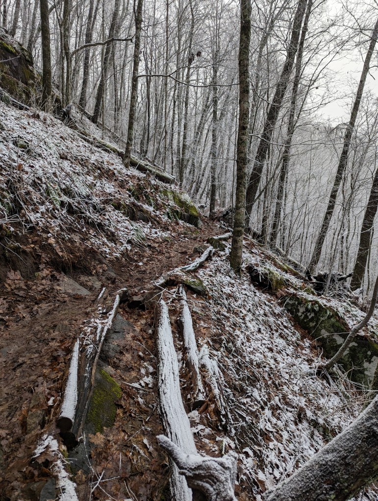 The Smokies are a hot topic among thru-hikers because they are super challenging and the weather can be unpredictable. They certainly lived up to their hype! We set out on a chilly, but beautiful day. The initial hike into the National Park was a long 5 mile climb, but it was gradual. No steps, no steep inclines, and a beautiful day…we’ll take it!