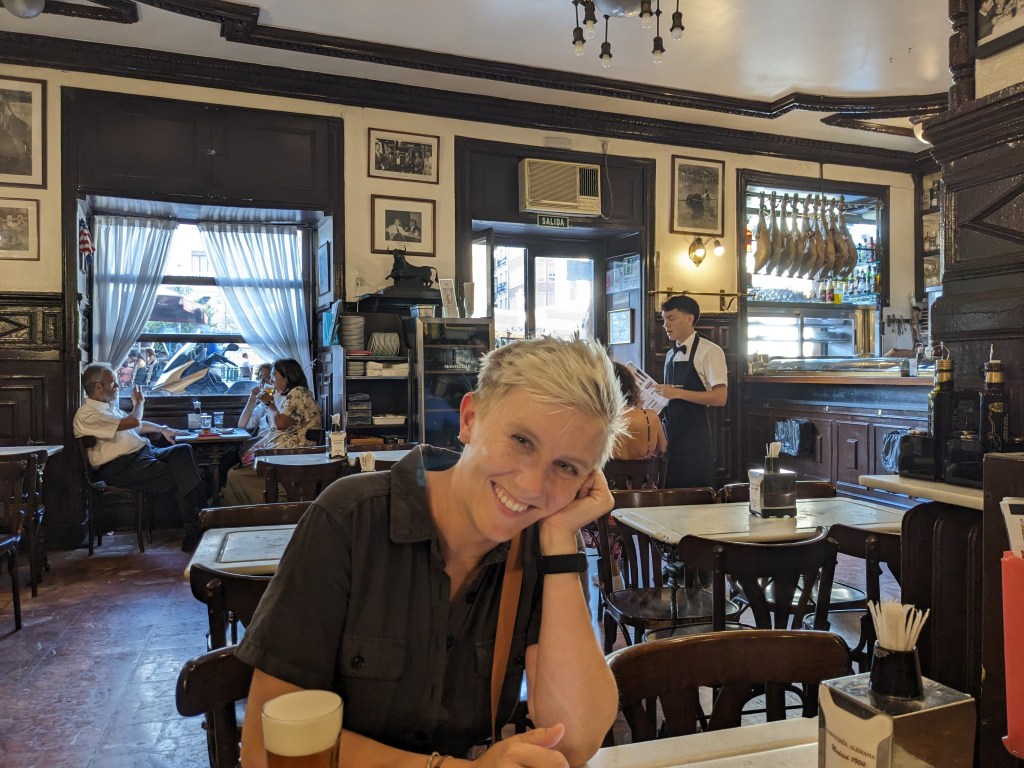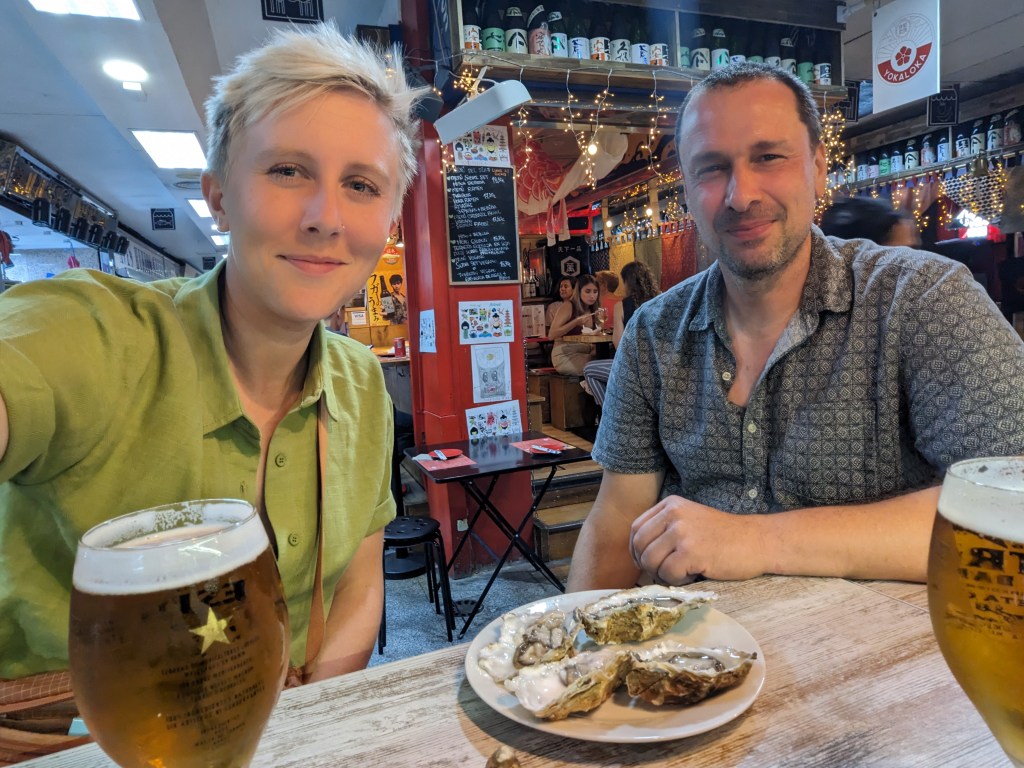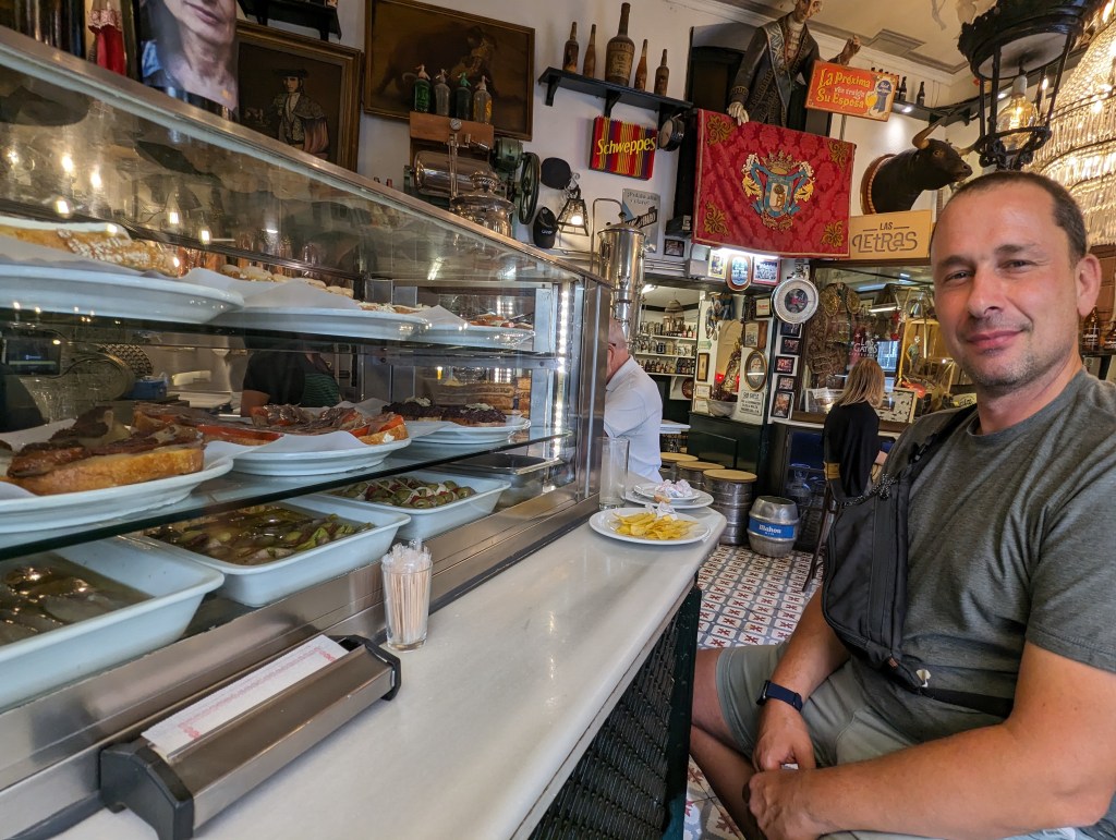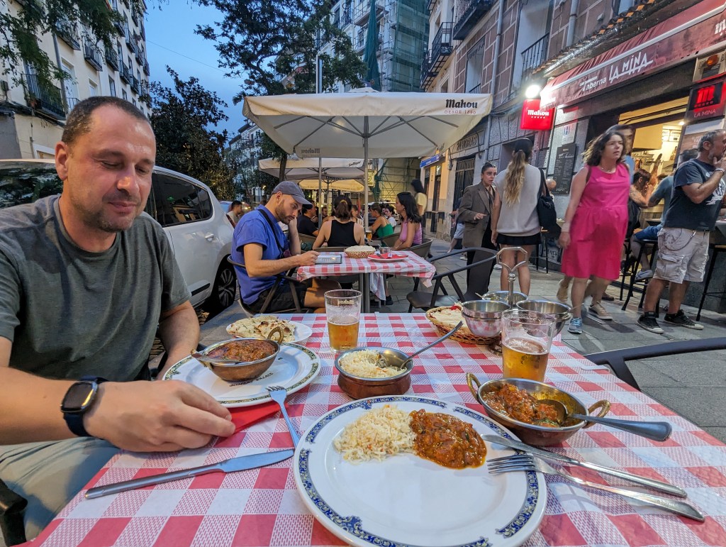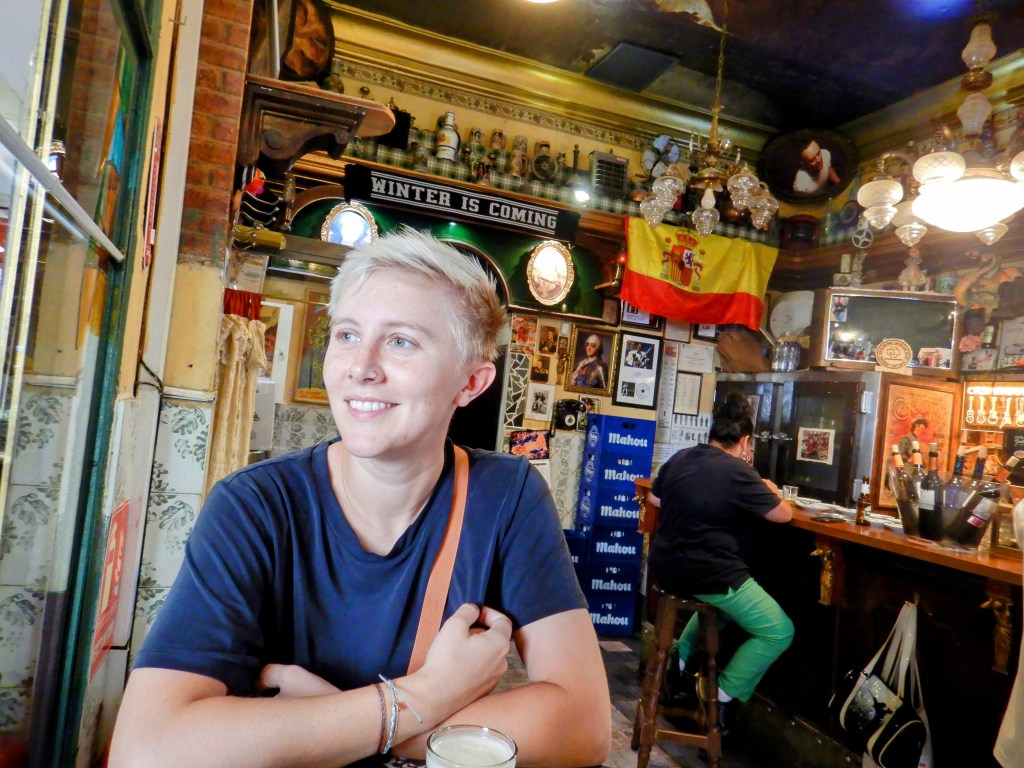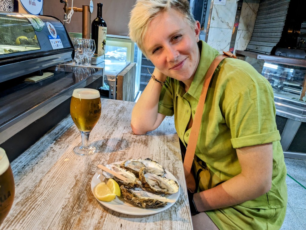 And, of course, we enjoyed one of our most cherished traveling activities – eating and drinking. Madrid was packed with bars and restaurants and I loved wandering around waiting to see which one would draw us in. We enjoyed plenty of cañas at small neighborhood bars, classic tapas, fabulous Argentinian food, a whole street full of Indian restaurants, and a sweet little oyster stand that made Alex swoon.