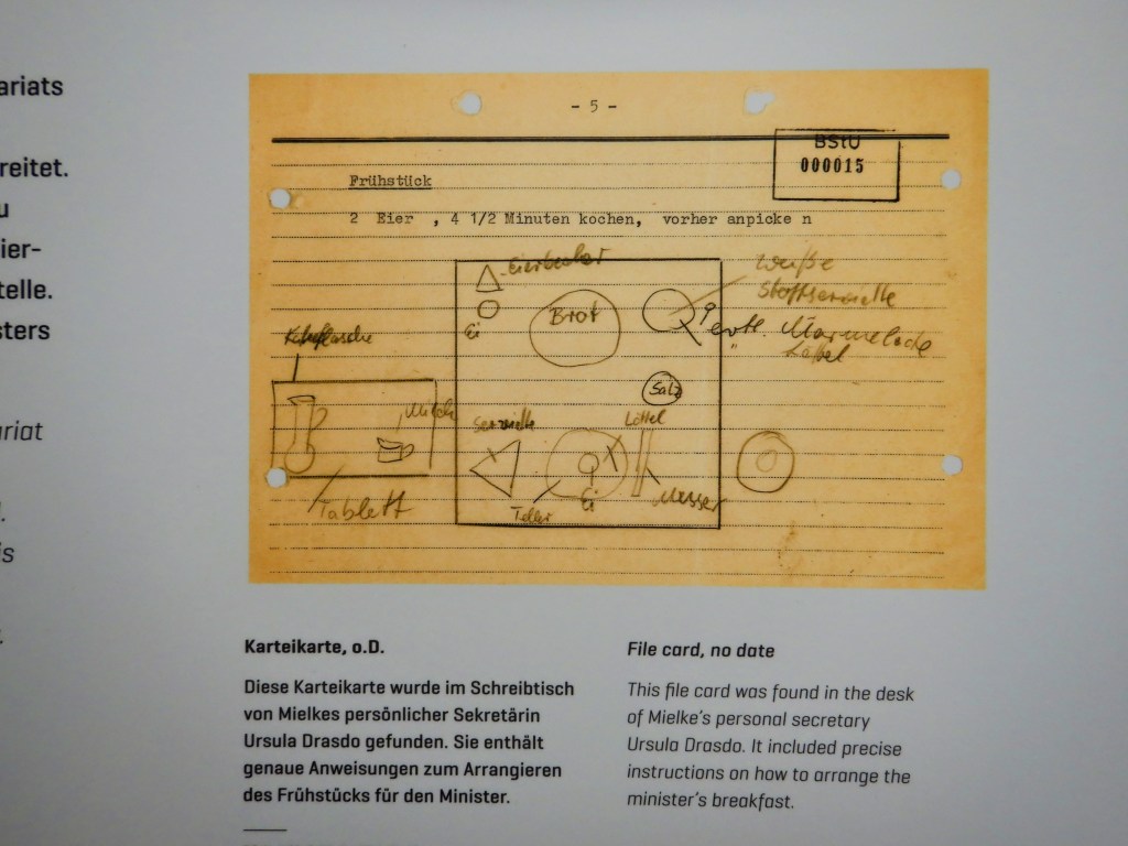 The offices and meeting rooms were left largely as they were with the original furniture – a very interesting glimpse into that era. We did get a kick out of one thing displayed at the museum. In the desk drawer of Erich Mielke’s secretary was an index card that outlined in very great detail exactly how the head of the Stasi liked his breakfast every morning. Alex and I decided if we ever opened a restaurant, we would offer the “Erich Mielke Breakfast.”