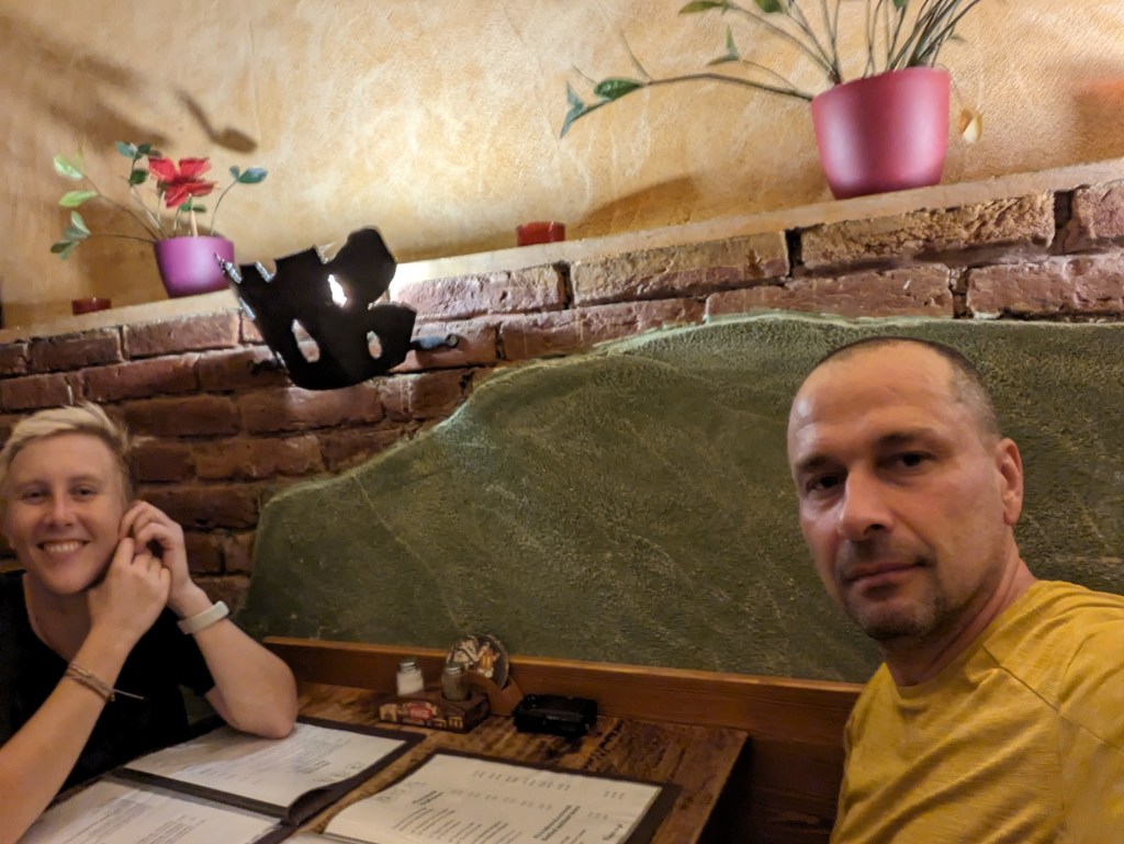 Of course we don’t travel without seeking out some of the local food and drink specialities. Our first task was to try some local Czech beer which just happened to be (the original) Budweiser. I can say with certainty that Czech Budweiser is far better than the US. Along with tasting several varieties of beer, we had some really excellent Czech food. It started when we were at the corner bar enjoying our Budweisers and started feeling a bit snacky. Alex noticed two jars full of something pickled and ordered it out of curiosity. They ended up being Czech staples – pickled cheese and pickled sausage – and they were both delicious. Alex also found a cozy local restaurant that we loved so much we ate there 2 nights in a row. Goulash and stuffed dumplings, my mouth is watering just thinking about them.