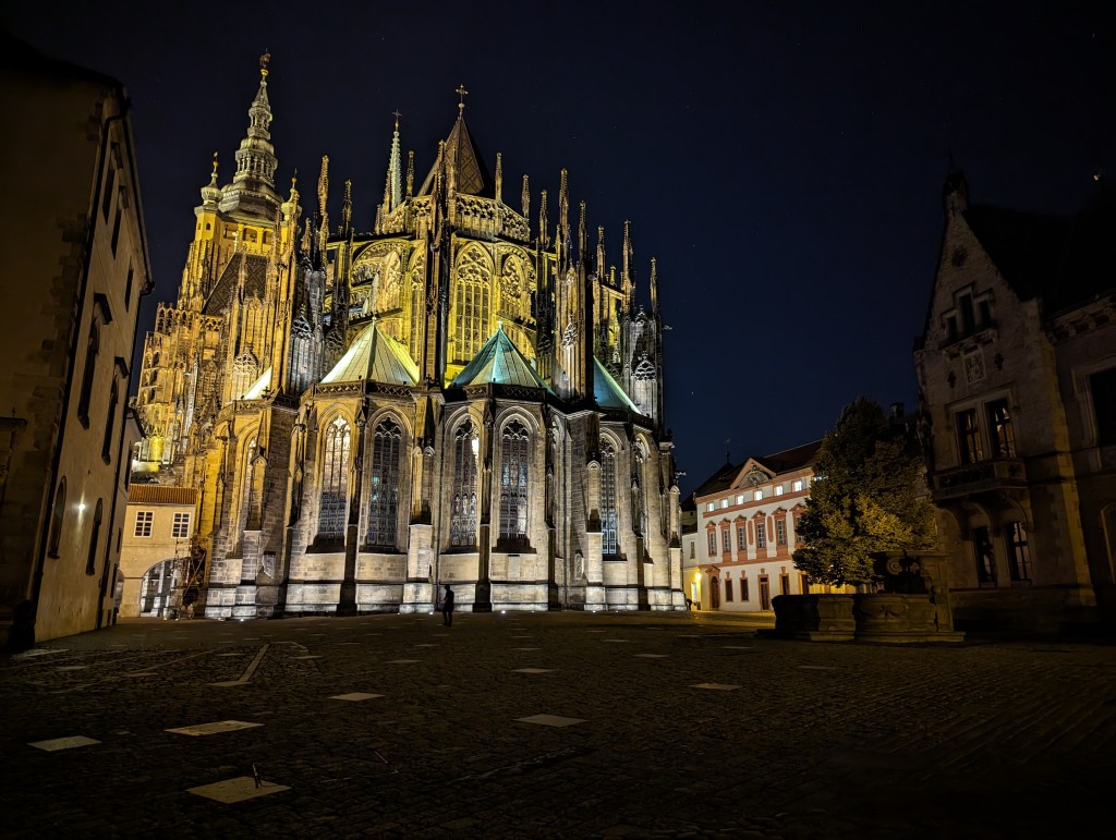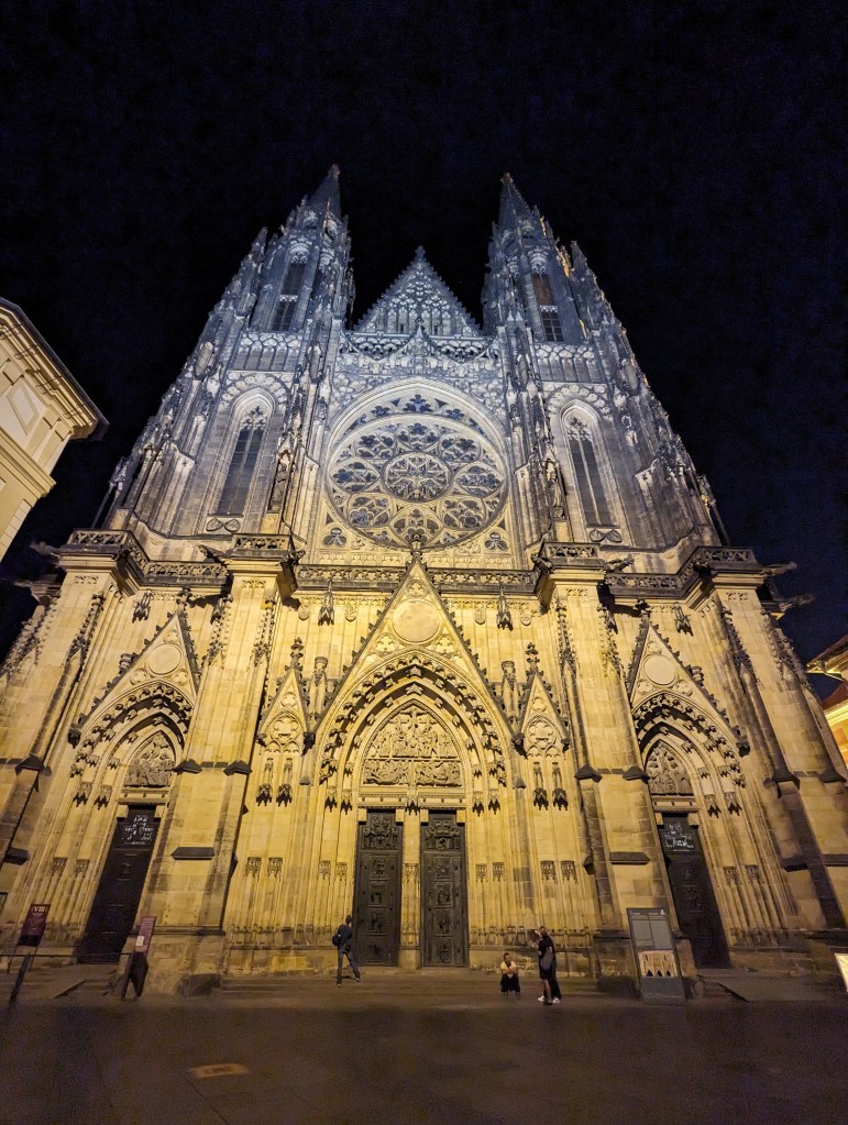 The last stop on our Prague tour was the infamous cathedral perched on top of the hill and inside the Prague Castle overlooking the city. Since we heard this spot is especially overrun with tourists during the day we decided to make the trek up the massive staircase at night to avoid the crowds. And I am so glad we did! I am sure the cathedral is impressive during the day, but lit up at night it had an intense presence. We were basically alone as we wandered around the courtyard just blown away by this Gothic structure. It gave off a very menacing, spooky vibe that I loved.