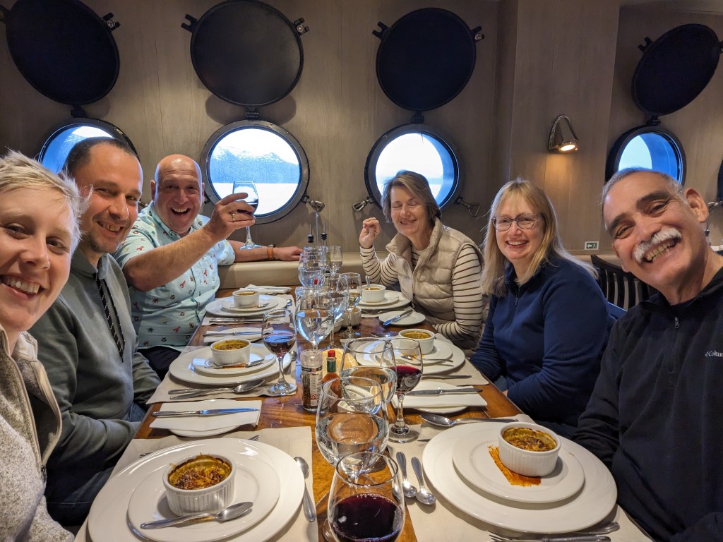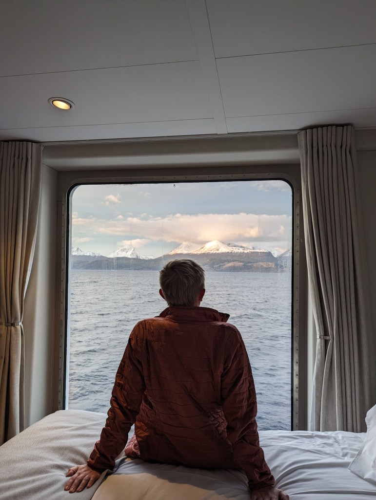 When I saw our boat in the harbor, dwarfed by some of the other massive ships docked there, I got super excited. We boarded in the evening and were shown to our room which was surprisingly roomy with a huge window. The ship itself was really nice, with a couple of lounges and viewing areas – enough space to not feel claustrophobic. The “expedition cruise” as they called it kicked off with a welcome toast and dinner where we met the group of people we would be dining with for the next four days.